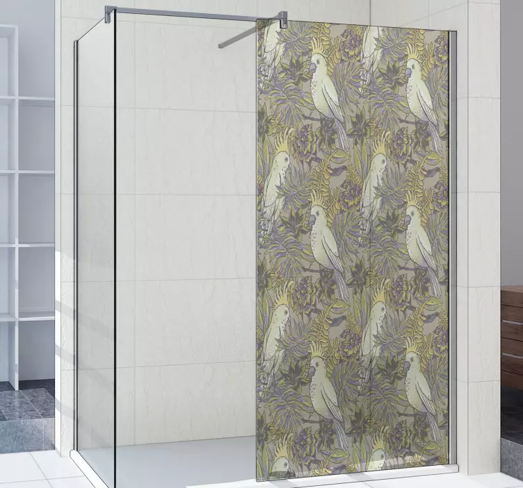 Rendi il tuo bagno un angolo di paradiso con il nostro Adesivo per box doccia motivi aviani eleganti. Il design unico presenta un meraviglioso schermo doccia adornato da pappagalli colorati, foglie verdi, fiori vibranti e dettagli floreali che evocano la bellezza della natura. Questo motivo decorativo è pensato per portare un tocco di eleganza e freschezza alla tua esperienza quotidiana di doccia!