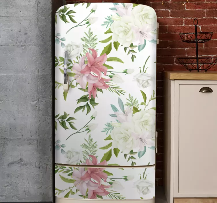 Riferimento: A49541Caratterizzato da un vivace motivo floreale, questo design arricchisce l'estetica degli elettrodomestici da cucina. L'elegante combinazione di fiori rosa e bianchi abbinati a una lussureggiante vegetazione porta una sensazione di freschezza nello spazio, ideale per aggiungere fascino e sofisticatezza a qualsiasi ambiente cucina.