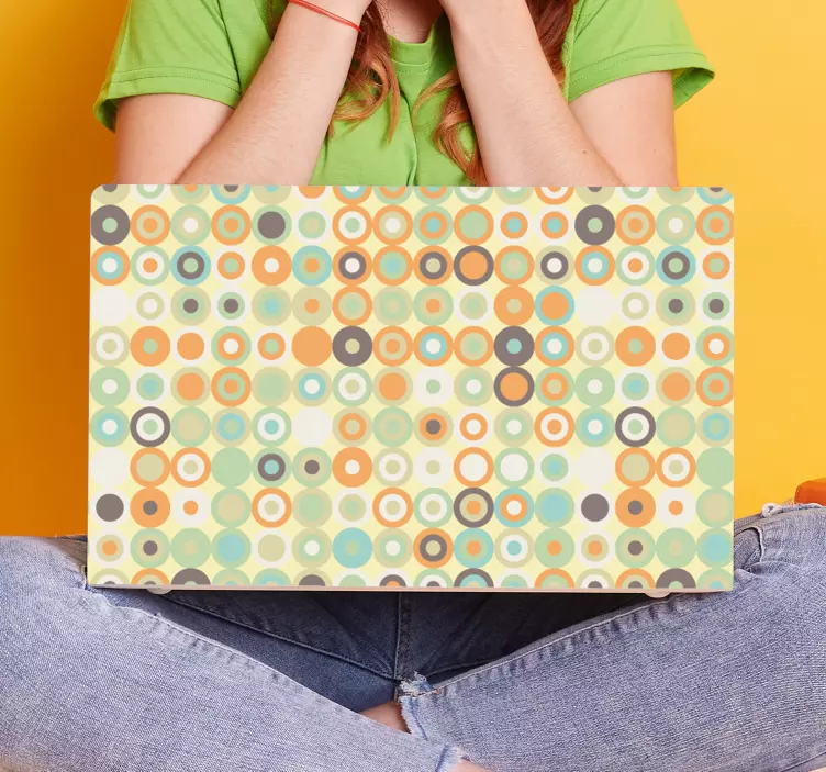 Scopri il nostro adesivo per laptop motivo circolare colorato, un vero e proprio capolavoro di design! Con il suo stile ispirato agli anni '70, questo adesivo presenta un motivo geometrico di cerchi colorati che rende ogni computer portatile un oggetto unico e divertente. La sua grafica astratta e vivace porta un tocco di allegria e personalità al tuo laptop, trasformando un semplice dispositivo in un'opera d'arte!
