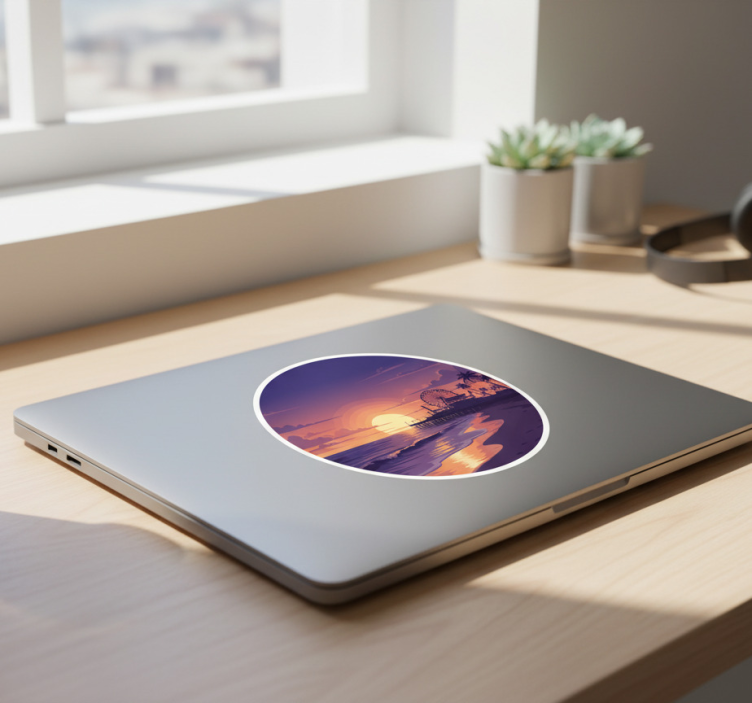 Adesivo per laptop scena del tramonto viola costiero