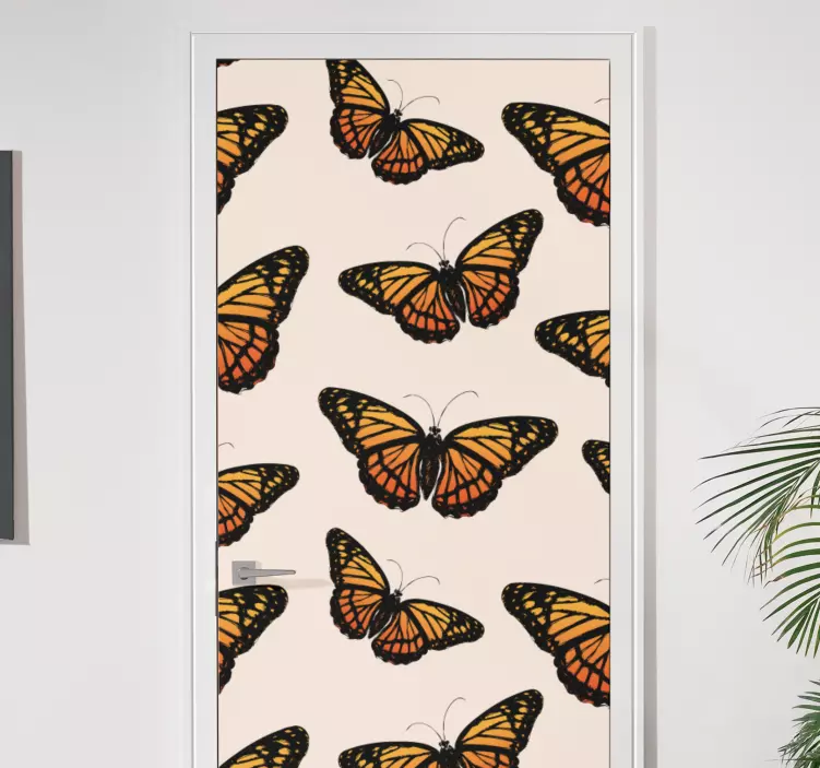 Scopri il nostro adesivo per porta illustrazione farfalla colorata, un vero e proprio capolavoro di design grafico! Questo adesivo presenta un'incantevole farfalla monarca che si libra su uno sfondo che evoca la natura in tutte le sue sfumature. Con i suoi colori vivaci, in particolare l'arancione, questo modello di farfalle è ideale per dare un tocco decorativo e originale a qualsiasi porta, trasformando gli spazi in un luogo di bellezza e gioia.