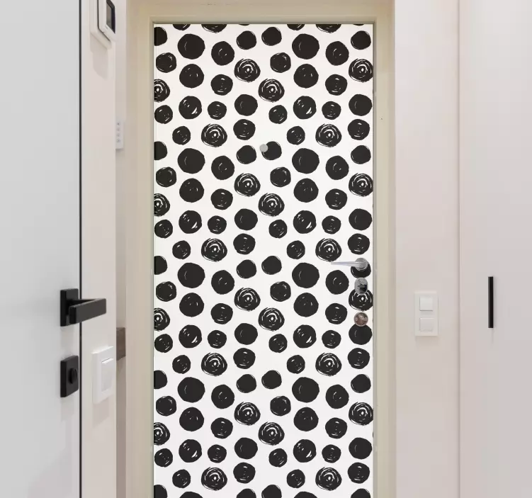 Scopri il nostro adesivo per porta motivo circolare bold, un elemento di design grafico che trasforma ogni porta in un'opera d'arte! Con il suo motivo circolare e il suo stile minimalista, questo adesivo presenta cerchi irregolari in bianco e nero che si fondono perfettamente in qualsiasi ambiente. La sua estetica geometrica e astratta è ideale per chi ama il design raffinato e contemporaneo, rendendo ogni porta un punto focale della stanza.
