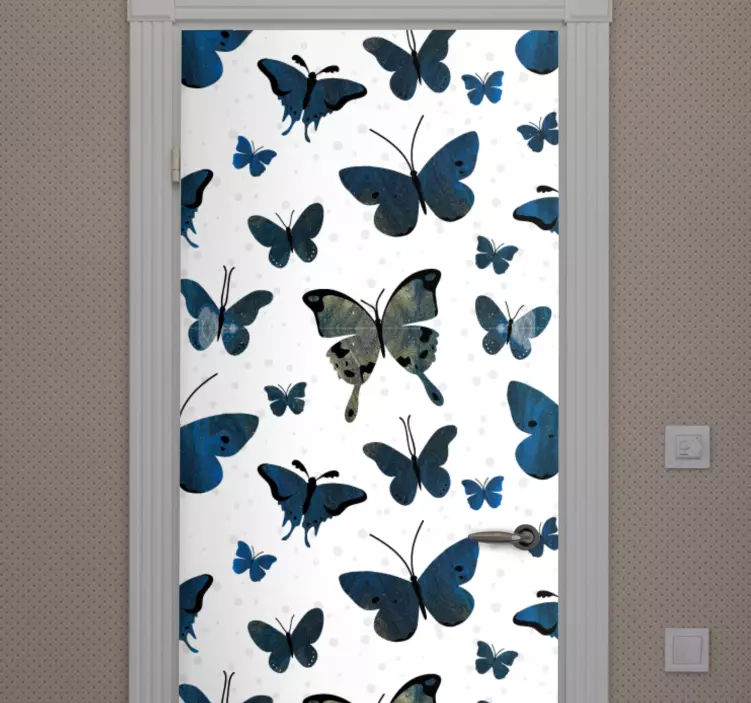 Scopri il nostro adesivo per porta vari motivi di farfalle, un meraviglioso esempio di design grafico ispirato alla natura! Questo adesivo presenta un incantevole modello di farfalle in toni di blu, perfetto per decorare e ravvivare qualsiasi ambiente. Gli elementi decorativi delle farfalle donano un tocco di eleganza e freschezza, trasformando una semplice porta in una vera opera d'arte!