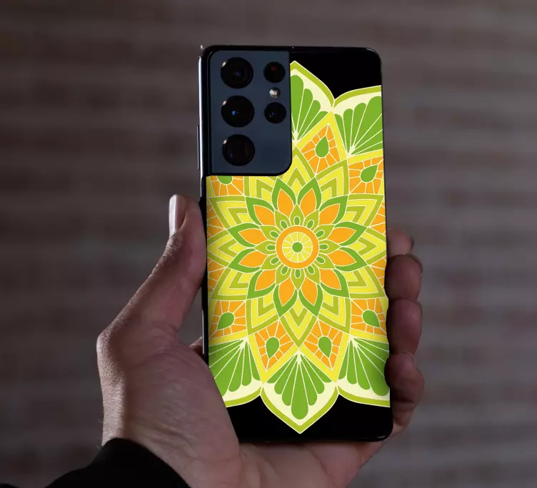 Scopri il nostro Adesivo Samsung elemento mandala floreale, un perfetto connubio di arte e natura! Questo adesivo presenta un design grafico unico, ispirato ai mandala, che combina toni di verde, giallo e arancione. Ideale per gli amanti della bellezza e della creatività, trasforma il tuo smartphone in un'opera d'arte vivente, riflettendo la tua personalità e il tuo amore per la natura.