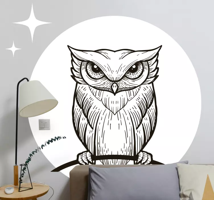 Scoprite l'eleganza dell'adesivo testata letto gufo saggio intricato, un'opera d'arte che arricchisce il vostro spazio con un design circolare e dettagliato. Questa illustrazione di un gufo circondato da stelle e richiami alla natura si presenta in un affascinante bianco e nero, trasformando ogni testata del letto in un angolo di serenità e saggezza!