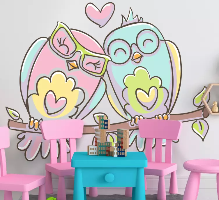 Scoprite il nostro adesivo uccelli uccelli d'amore adorabili, un'accattivante illustrazione di gufi felici in tonalità di rosa e blu che catturerà il vostro cuore! Questo design unico rappresenta una coppia di uccelli innamorati, perfetta per aggiungere un tocco di dolcezza e gioia a qualsiasi ambiente. Non solo è carino, ma porta anche un senso di affetto che rende ogni spazio più accogliente!