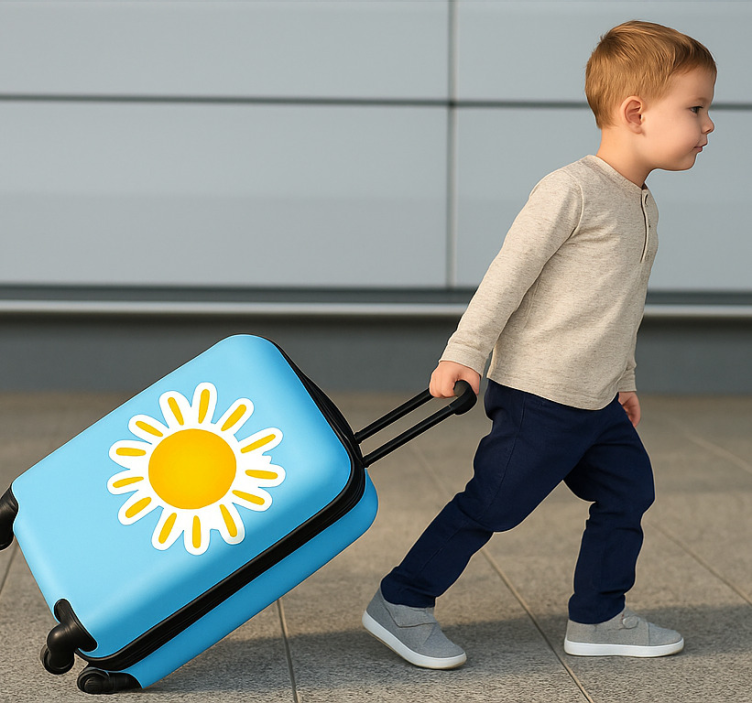Riferimento: A54145Il Adesivo viaggio sole dorato radioso porta un tocco di calore e luminosità in ogni ambiente. Con un design che cattura l'essenza di un sole splendente e radioso, questo adesivo è realizzato con una finitura satinata che non riflette la luce, permettendo di apprezzare i suoi colori vibranti senza fastidiosa lucentezza. La sua grammatura di 80 micron e la resistenza lo rendono un prodotto di alta qualità, facile da pulire con un panno umido e sapone neutro.
