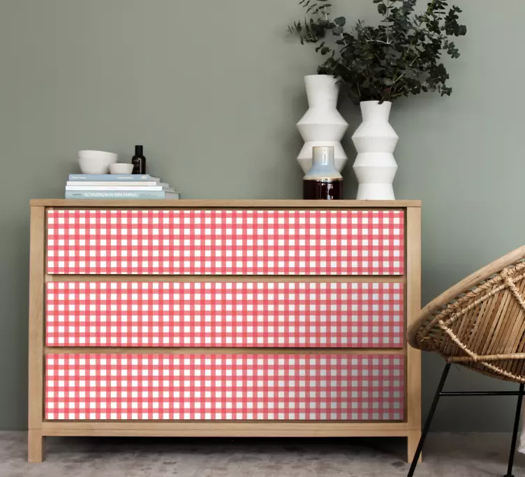 La Carta adesiva per mobili motivo a quadri rossi è un elemento di design irresistibile che trasforma il tuo arredamento con un tocco di eleganza e vivacità! Questo modello a scacchi in tonalità rosse è perfetto per chi desidera un Home decor originale e accattivante. Con la sua struttura plaid, può facilmente adattarsi a qualsiasi ambiente, rendendo il tuo interior design unico e personalizzato.