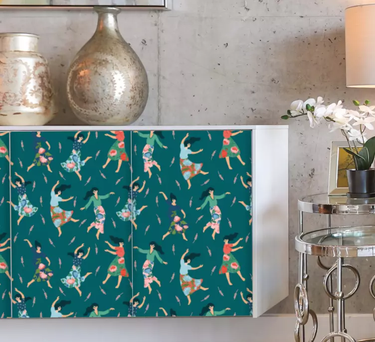Scopri la carta adesiva per mobili motivo di movimento gioioso, un design vibrante e dinamico che cattura l'essenza della danza! Le figure stilizzate di donne che ballano si intrecciano in un modello colorato e astratto, portando un'atmosfera di celebrazione e vitalità negli spazi che arredano.