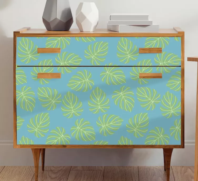 La carta adesiva per mobili motivo foglioso è un vero capolavoro di design che porta la freschezza della natura dentro casa! Con il suo motivo di foglie tropicali in tonalità di blu e verde, questo modello decorativo trasforma qualsiasi ambiente in un angolo di relax e armonia. Le foglie danzano su una superficie satinata che non riflette la luce, esaltando l'intensità dei colori e regalando una sensazione di calore e accoglienza.