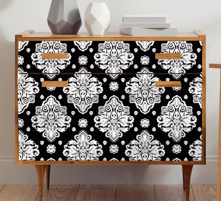 Scoprite la magia della Carta adesiva per mobili sovrapposizione elegante, un prodotto dal design accattivante che unisce arredamento, teschi, fiori, damasco e ornato in un modello esclusivo in bianco e nero. Questo motivo ornato si inserisce perfettamente in uno stile moderno, rendendo la progettazione di mobili un'esperienza unica per il vostro interno della casa!