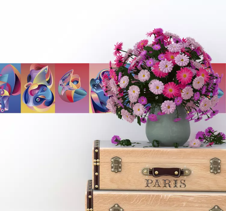 Scopri la nostra Greca adesiva forme colorate astratte, un prodotto dal design moderno e giocoso, caratterizzato da forme geometriche che richiamano animali e creano un'atmosfera astratta e colorata. Perfetta per chi desidera dare un tocco di originalità e vivacità ai propri spazi!