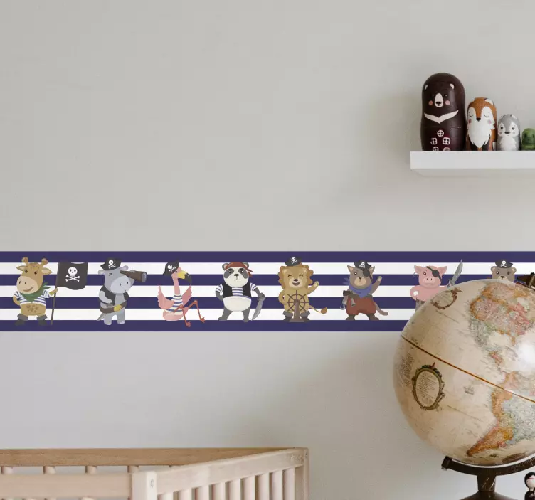 Riferimento: A47219Una vivace collezione di personaggi animali a tema pirata mostrati in pose giocose. Ogni animale indossa vari accessori da pirata, creando un'atmosfera deliziosa e avventurosa perfetta per gli spazi dei bambini. Il design presenta strisce, aggiungendo un elemento nautico alla moda al tema complessivo.