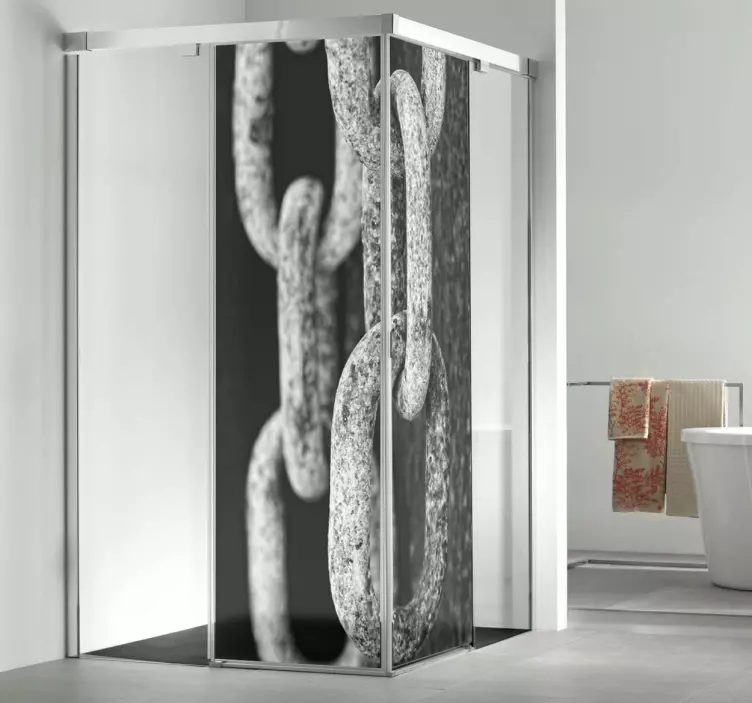 Sticker decorativo molto originale per decorare il tuo box doccia. Idea origiale che raffigura una grande catena di ferro. Una fotografia originale di Victor Ferrero in bianco e nero, curata nei minimi dettagli.
