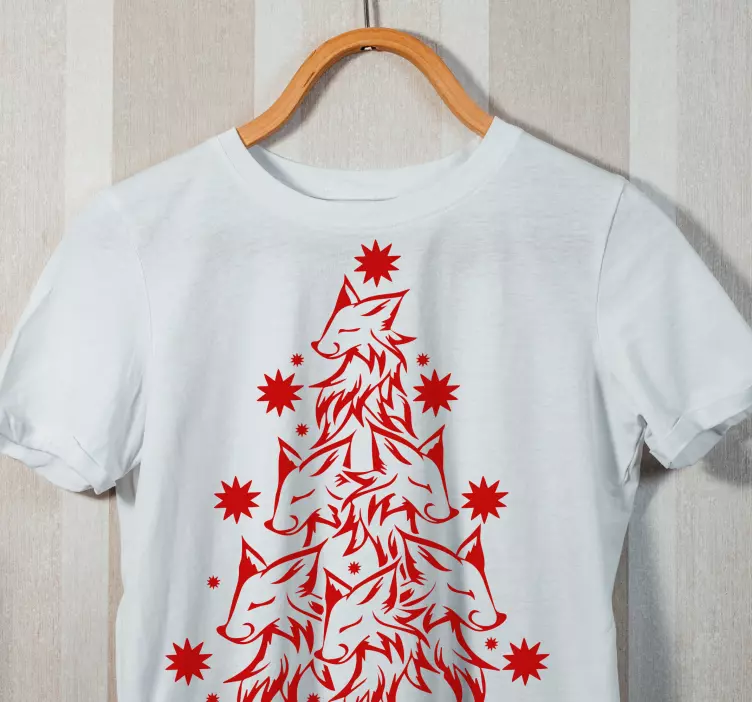 Riferimento: T5438Questo design festivo unico presenta teste di lupo disposte in modo intricato in una formazione piramidale, arricchite da motivi a stella. Il vivace colore rosso risalta sullo sfondo bianco, rendendolo un pezzo accattivante perfetto per la stagione delle festività.
