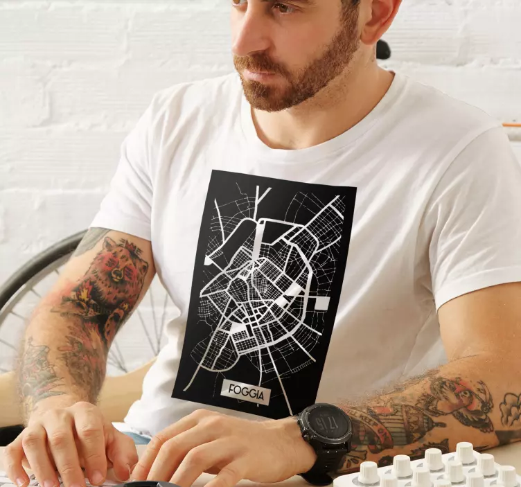 Con questa splendida maglietta con mappa topografica potrai mostrare orgoglioso il posto da cui provieni, in questo specifico caso la mappa rappresenta la mappa della città di foggia, in Puglia, nello splendido tacco d'Italia. Il disegno che puoi ammirare sulla nostra favolosa maglietta con carta topografica è su uno sfondo nero che rende il tutto più moderno e elegante. Il tessuto è cotone di alta qualità, traspirante e non irritante. Puoi lavarlo normalmente in lavatrice e la qualità non si vedrà danneggiata dai detersivi o dalle temperature. Scegli la taglia più adatta a te, sono disponibili taglie per donne, uomini, adulti e bambini!