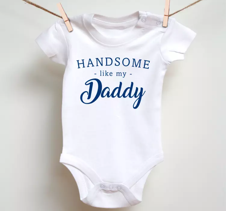 Riferimento: T5450Questo affascinante completo presenta la frase 'Handsome Like Daddy', perfetto per celebrare il legame tra padri e i loro piccoli. Il design combina una tipografia giocosa con un aspetto classico, rendendolo una scelta deliziosa per ogni occasione.