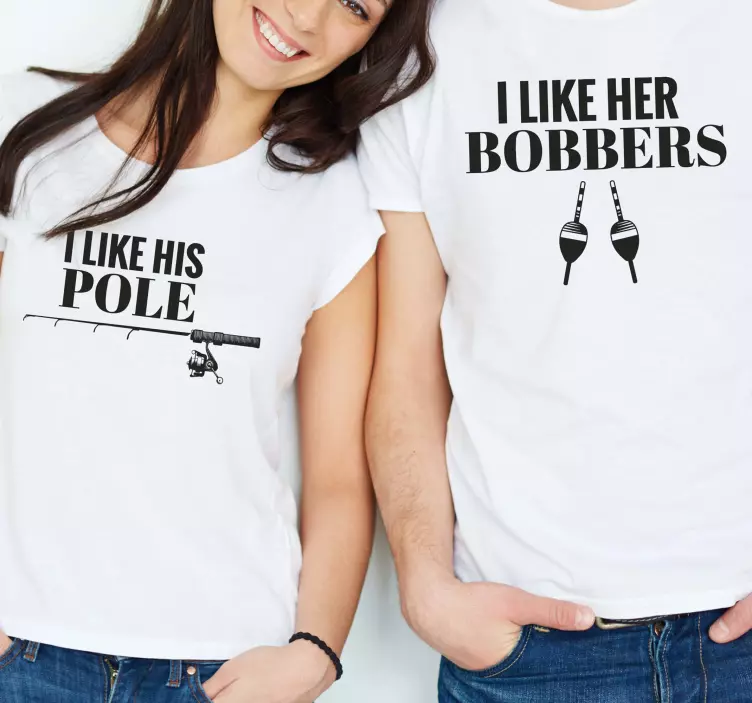Riferimento: T5280Questa immagine mostra una coppia che indossa magliette giocose con citazioni umoristiche legate alla pesca. Ogni maglietta mette in evidenza frasi spiritose, combinando divertimento e fascino, perfette per le coppie che amano pescare insieme. Il design abbraccia un tema leggero che sicuramente divertirà sia i portatori che gli spettatori.
