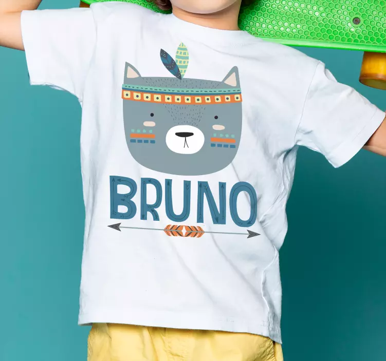 Riferimento: T4968Questo design presenta un adorabile volto di orso con elementi tribali, evidenziato da colori vivaci e un nome personalizzato. Irradia un'atmosfera gioiosa, perfetta per i bambini. La composizione è coinvolgente e visivamente accattivante, rendendola una scelta ideale per i più piccoli.