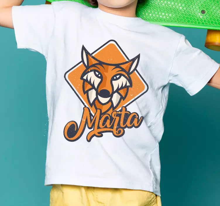 Riferimento: T4980Questo design affascinante presenta un'illustrazione di una volpe sorprendente con colori vivaci ed elementi giocosi, personalizzato con il nome 'Marta'. Perfetto per i bambini, combina divertimento e creatività, rendendo ogni pezzo unico e speciale.