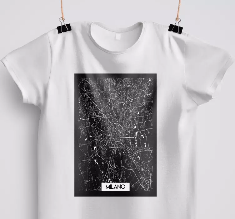 Creativa maglietta bianca che può essere per uomo oppure per donna, con un design con sfondo nero e linee bianche e il testo con il nome di "Milano". Tutto questo può essere modificato se lo vuoi, soltanto devi inviarci un messaggio al nostro indirizzo email e il nostro servizio clienti ti aiuterà sempre! È una maglietta per uomo bellissima che può diventare un regalo interessantissimo. Non devi dubitare a fare un regalo come questo. È un regalo che anche puoi dare a qualunque donne che ama la geografia e ama lo stile minimalista del design con sfondo nero. È una t shirt bianca davvero originale.