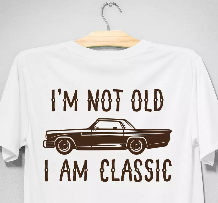 Riferimento: T4519Questo design presenta un'auto d'epoca accanto a un testo giocoso, sottolineando un'affermazione umoristica sull'invecchiamento. Cattura perfettamente un'atmosfera nostalgica mentre si rivolge alle dinamiche familiari, rendendolo ideale per momenti di legame tra padre e figlio.