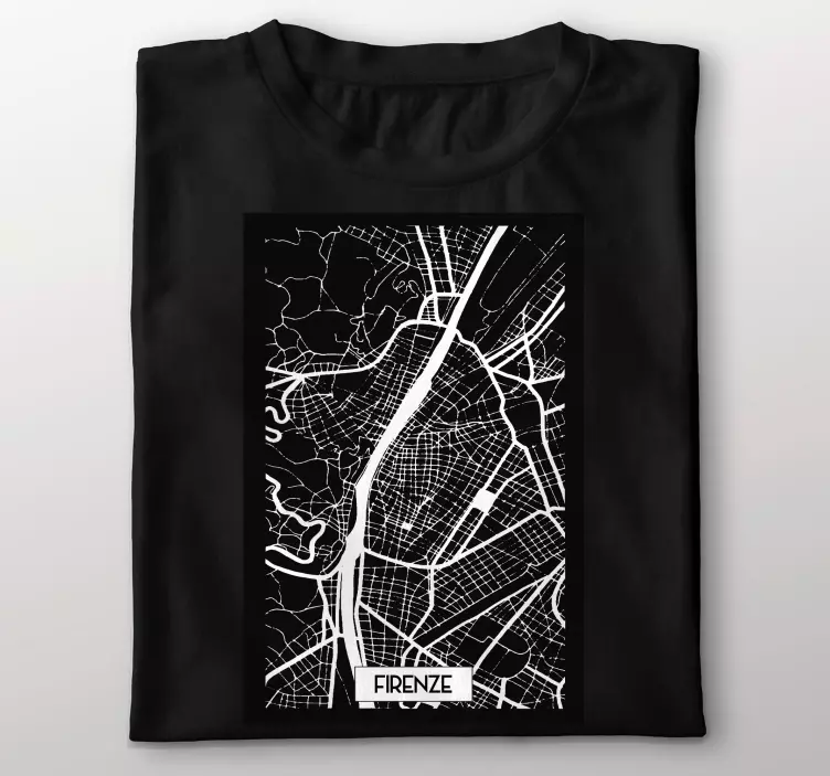 Originale maglietta per uomo nera della carta topografica della città di Firenze, il design è un quadretto del mappamondo della città con linee bianche, pero' puoi avere il prodotto con i colori invertiti. Puoi scegliere le taglie che hai bisogno d'avere. Questa t shirt uomo, la puoi avere molto rapido nella tua casa se acquisti subito. È un disegno di una città bellissima e fantastica che tutti noi amiamo. È una città dell'arte, dell'amore, di tutti i pensieri. È una città bella che puoi avere con te in una maglietta nera senza problemi. È un materiale ottimo, fatto da vinile.