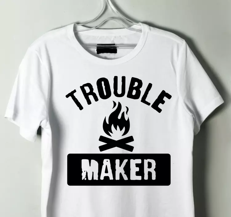 Riferimento: T5448Questo design accattivante presenta un testo audace che recita 'Trouble Maker', accompagnato da simboli di fiamma e falò. È perfetto per chi abbraccia uno spirito divertente e avventuroso. Il contrasto tra il nero e il bianco aggiunge un elemento di eccitazione e cattura l'attenzione senza sforzo.