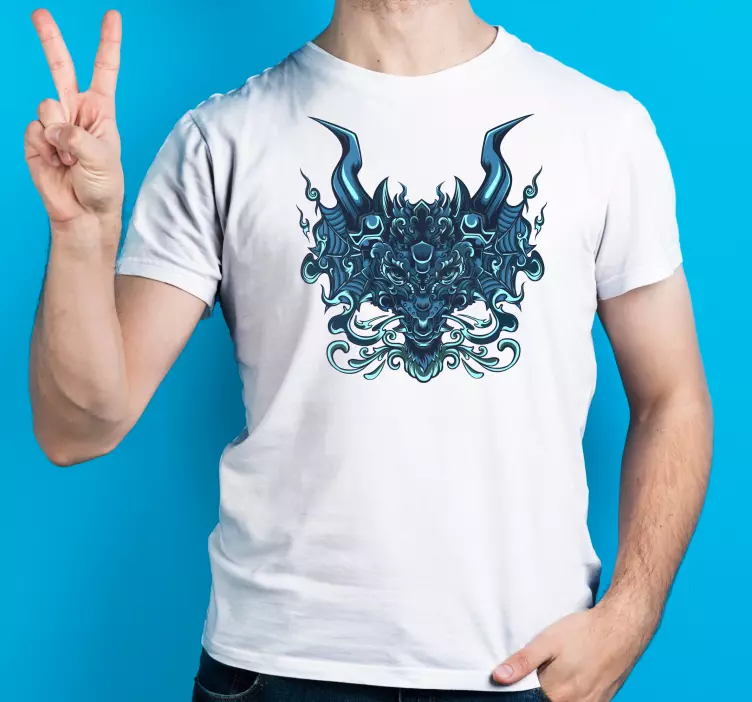 Riferimento: T4806Questa grafica sorprendente presenta una creatura cornuta intricatamente progettata in tonalità di blu profondo. L'illustrazione dettagliata mostra una fusione di elementi fieri, rendendola ideale per chi cerca un aspetto unico e potente. Perfetta per fare una dichiarazione con il suo tocco drammatico.