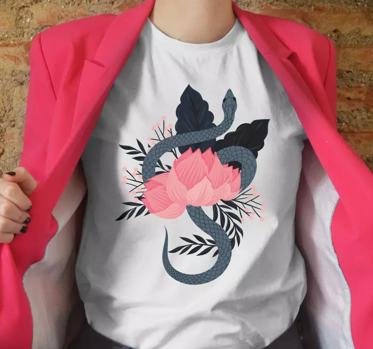 Magliette motivo serpente e fiore