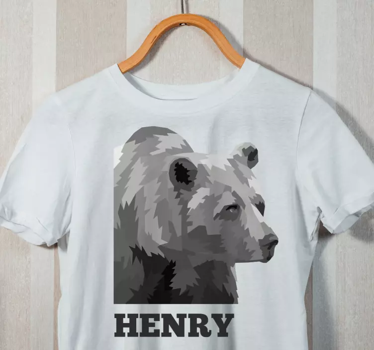 Riferimento: T4983Questo design presenta un orso rappresentato in uno stile geometrico, offrendo una rappresentazione unica. Il nome 'Henry' accompagna l'animale, creando un tocco personalizzato. Le tonalità di grigio aggiungono un elemento contemporaneo, rendendolo attraente per un ampio pubblico.