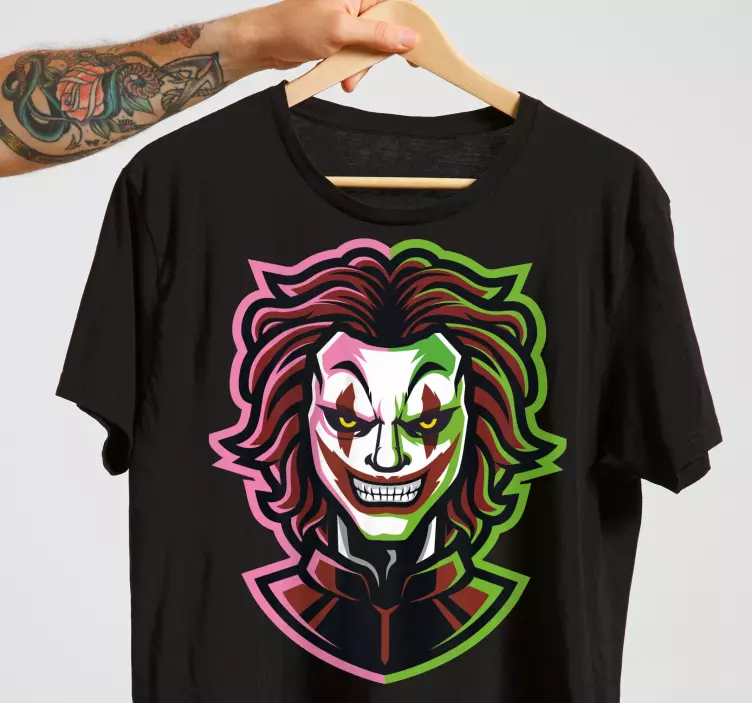 Riferimento: T4710Questo design presenta un personaggio clown inquietante e affascinante, messo in risalto da colori vivaci e un'espressione facciale minacciosa. Ideale per Halloween, fonde elementi dell'orrore con uno stile grafico unico, rendendolo un pezzo distintivo per chi abbraccia la stagione spettrale.