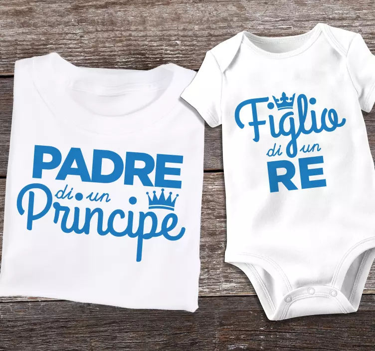 Per tutti i papà il proprio figlio è un principe, così come per tutti i figlio il proprio papà e un re. E come celebrare questo amore se non con le nostre fantastiche magliette papà figlio? Che meraviglioso design questo che puoi ammirare su queste magliette padre figlio. La maglietta papà raffigura il testo 'padre di un principe', mentre la maglietta del bambino 'figlio di un re'. Il materiale delle magliette è davvero di alta qualità, e la stampa è di grande resistenza, non avere paura di perdere la stampa dopo solo qualche lavaggio, inoltre, si possono stirare senza problemi!
