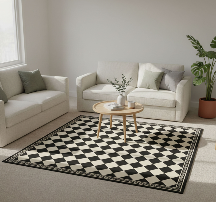 Riferimento: R19630Scopri il nostro Tappeto in vinile soggiorno scacchiera nera, un elemento di design unico che trasforma il tuo spazio con il suo motivo a scacchiera elegante e moderno, la sua superficie resistente e facile da pulire, la sua capacità di proteggere il pavimento e la sua struttura anti scivolo. Questo tappeto è la scelta perfetta per chi desidera unire estetica e funzionalità!
