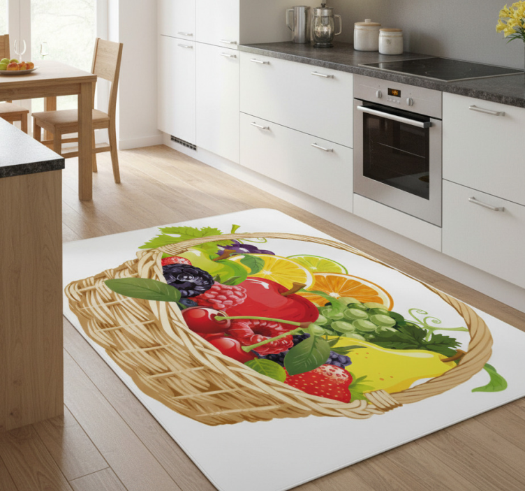 Riferimento: R21144Il tappeto pvc cucina cesto di frutta è un elemento di design che si distingue per il suo stile vivace e accattivante, caratterizzato da un motivo di frutta fresco e colorato che ravviva ogni ambiente, accompagnato da una superficie anti scivolo, resistente ai graffi e facile da pulire, perfetto per la cucina moderna.
