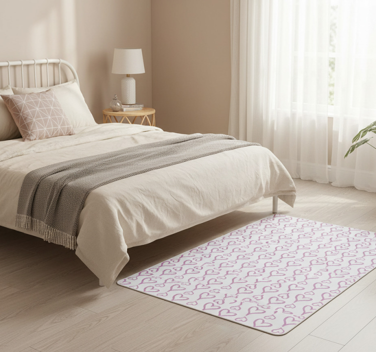 Tappeto vinile camera da letto icone cuore rosa illustrate