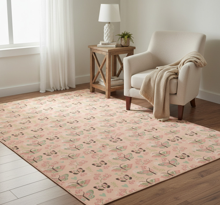 Tappeto vinile camera da letto tonalità neutre con farfalle