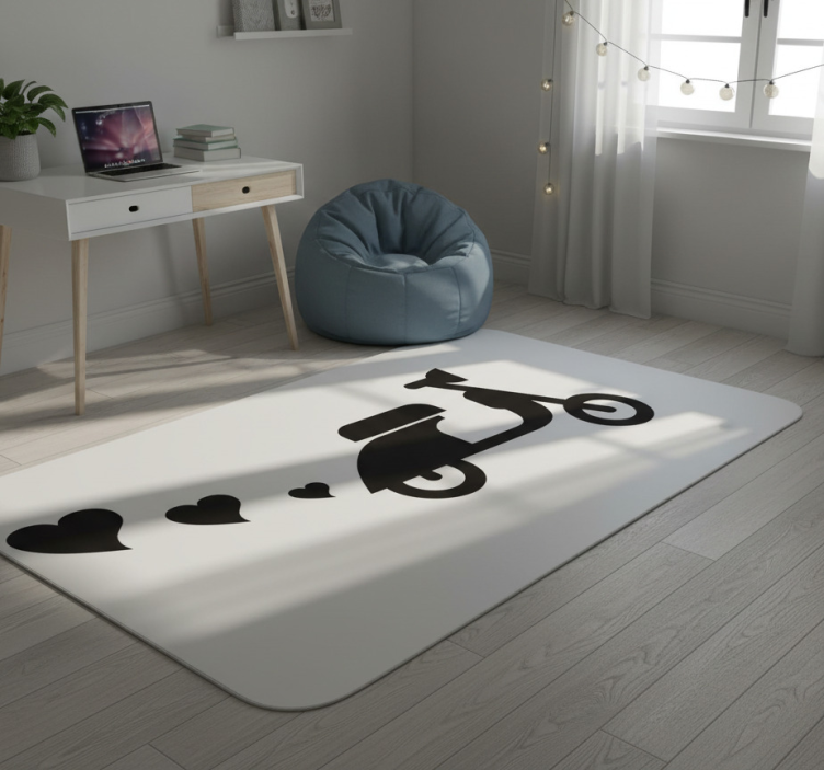 Tappeto vinile camera da letto moto e cuori