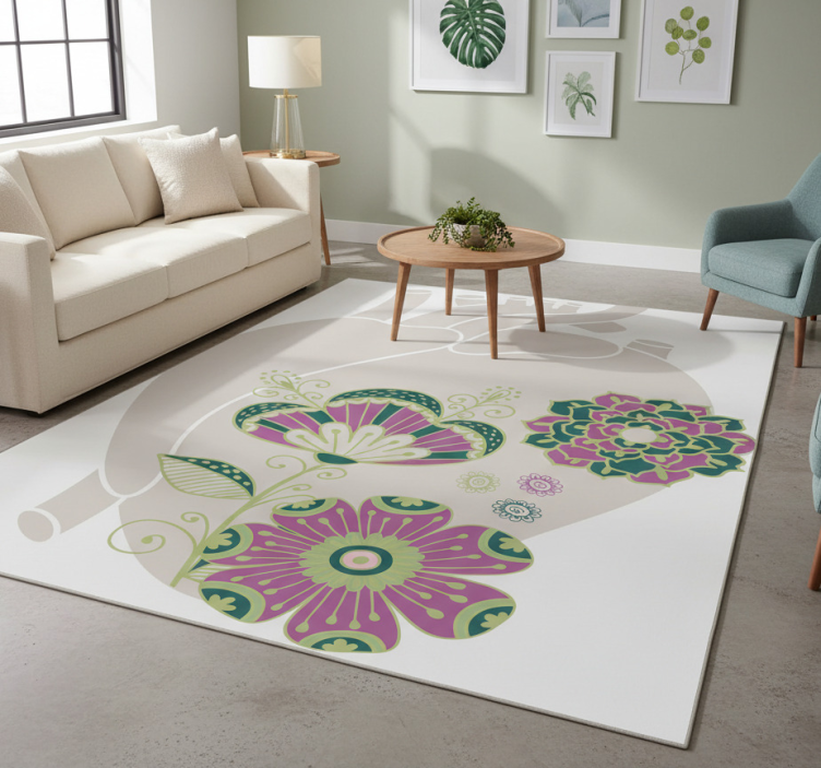 Tappeto vinile fiori cuore anatomico con fiori rossi