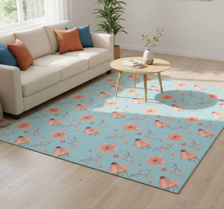 Tappeto vinile fiori fiori arancioni su sfondo blu