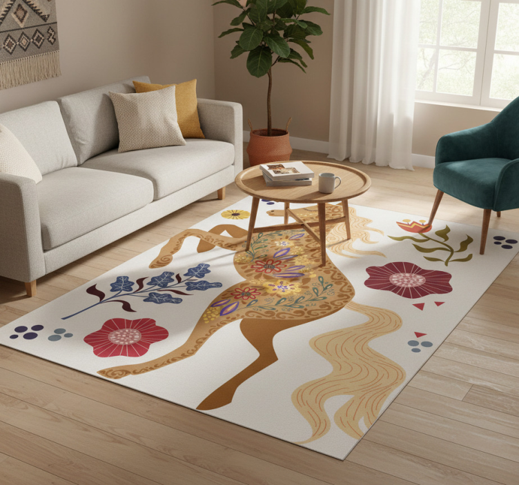 Il Tappeto vinile fiori è l'elemento ideale per chi desidera unire estetica e funzionalità. Con la sua illustrazione folcloristica e i cavalli che danzano tra i fiori, questo tappeto non solo arricchisce l'arredamento, ma crea anche un'atmosfera accogliente e vivace. Perfetto per soggiorni, camere da letto o spazi creativi, il tappeto è capace di rendere ogni stanza unica e affascinante!