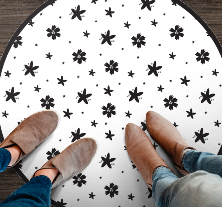 Il tappeto vinile fiori motivo a stelle floreali è un'eccezionale opera d'arte per il tuo ambiente, caratterizzato da un design che unisce eleganza e modernità. Con il suo motivo di fiori in un raffinato gioco di bianco e nero, questo tappeto riesce a catturare l'attenzione e a trasformare qualsiasi spazio in un luogo accogliente e stiloso. I fiori si intrecciano in un modello armonioso, rendendo il tappeto un elemento decorativo unico!