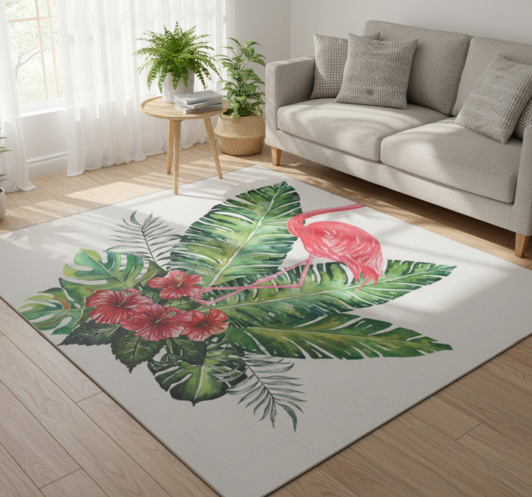 Tappeto vinile fiori grande fenicottero tropicale