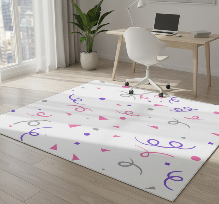 Tappeto vinile geometrico confetti grigi rosa e viola