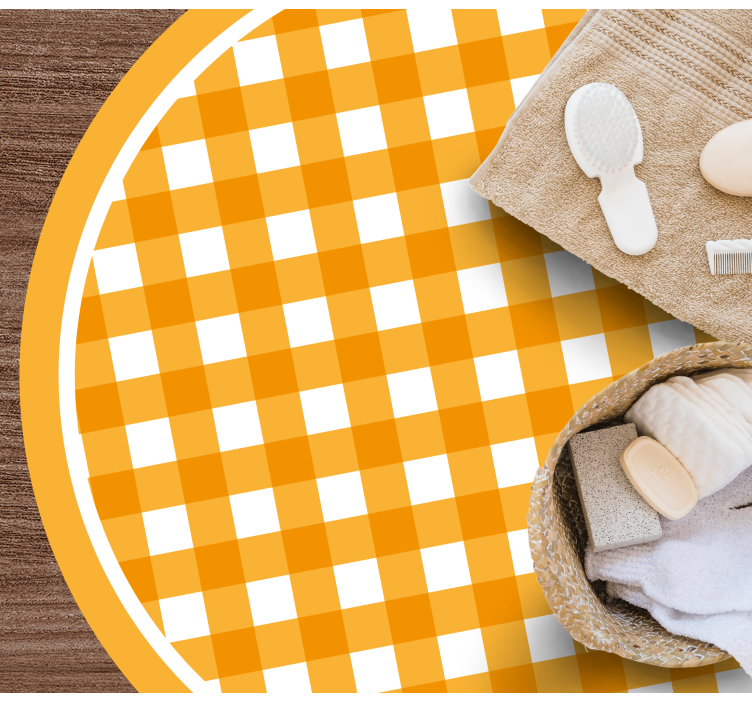 Riferimento: R19703Un vivace e caldo motivo a scacchi presenta quadrati alternati arancioni e bianchi, creando un effetto giocoso ma confortante. Il design è circolare, bordato da un contorno arancione solido, contribuendo a un aspetto allegro che si distingue.
