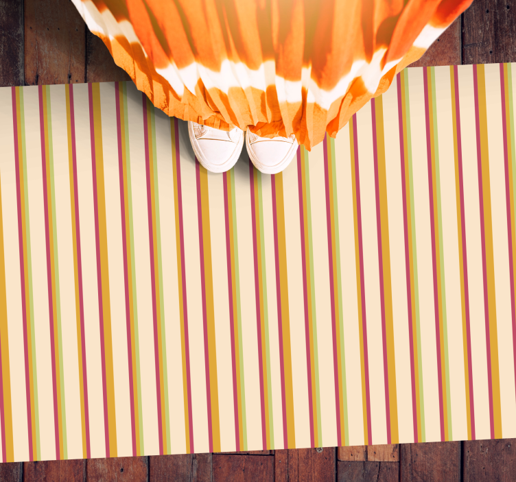 Il tappeto vinile strisce eleganza a strisce multiple è un vero e proprio capolavoro di design! Con un grafismo che gioca su linee verticali e una palette di colori vivaci, tra cui giallo, rosso, verde e beige, questo tappeto presenta un modello di strisce che cattura immediatamente l'attenzione, creando un'atmosfera elegante e contemporanea in ogni ambiente.