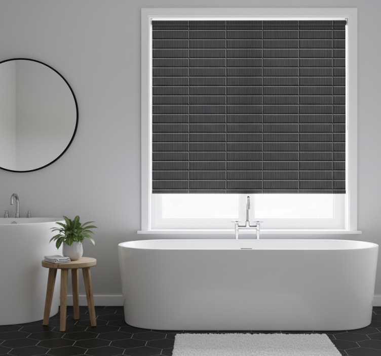 Tenda a rullo bagno piastrelle nere 3d