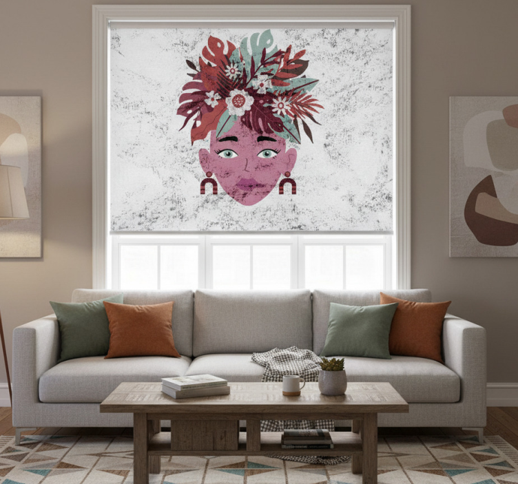 Tenda a rullo bianca design moderno di donna e fiori