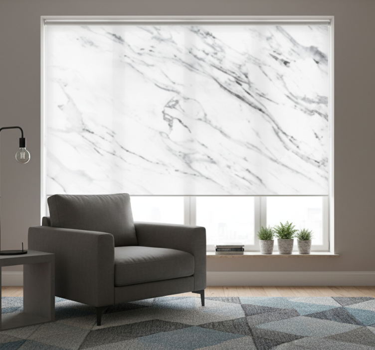 Tenda a rullo bianca effetto marmo stile industriale