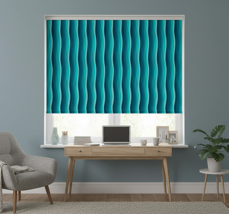Tenda a rullo blu con motivo onde